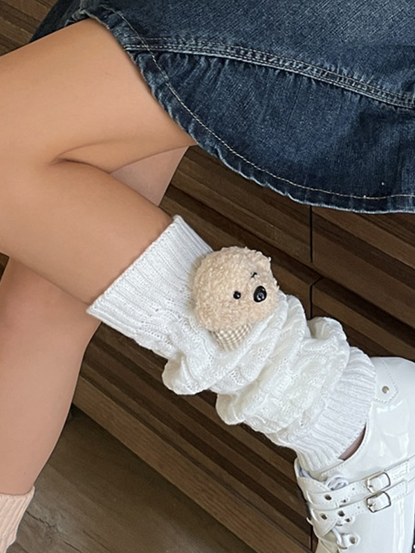 Calentador de piernas de punto con decoración de oso Twist Design