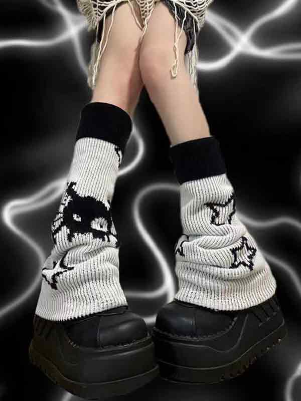 Calentador de piernas reversible con estampado de calaveras y estrellas