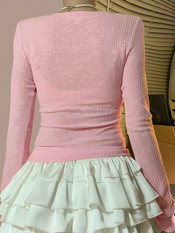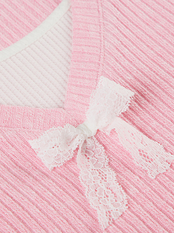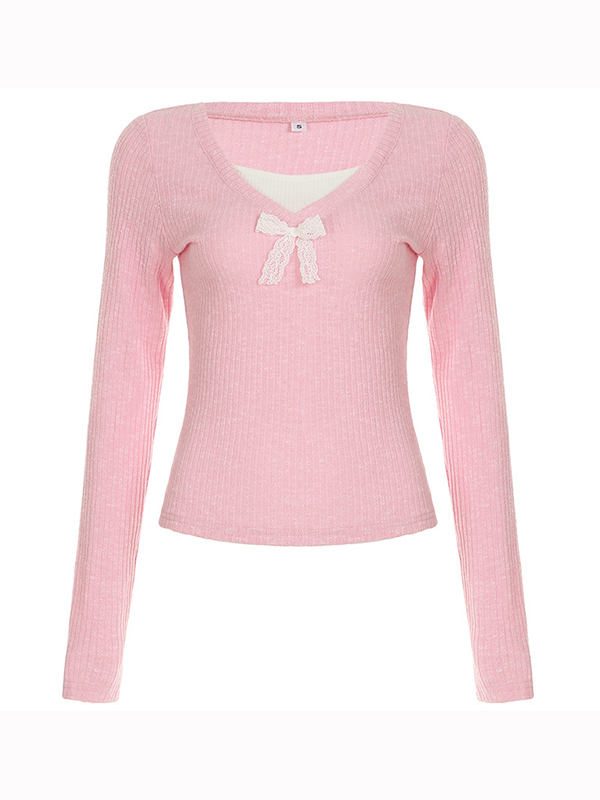 Camiseta de manga larga extragrande con lazo de encaje y color en contraste