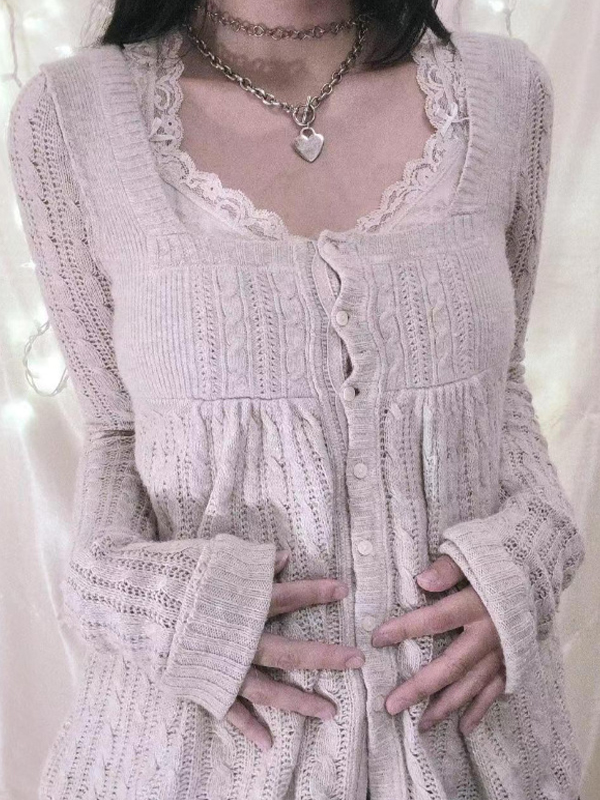 Cárdigan con costuras de encaje de estilo dulce
