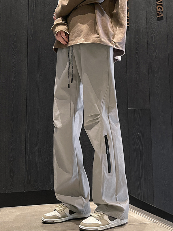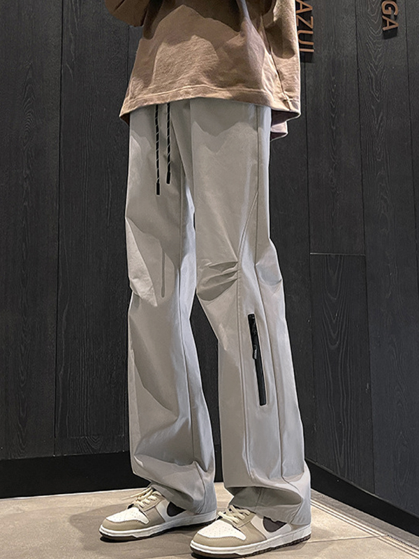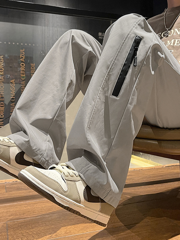Pantalones cargo rectos impermeables con diseño de cremallera para hombre