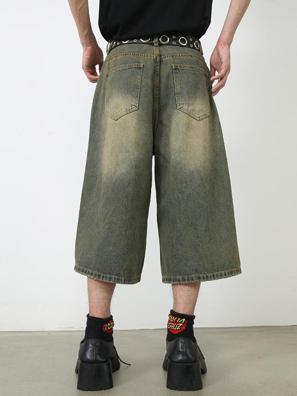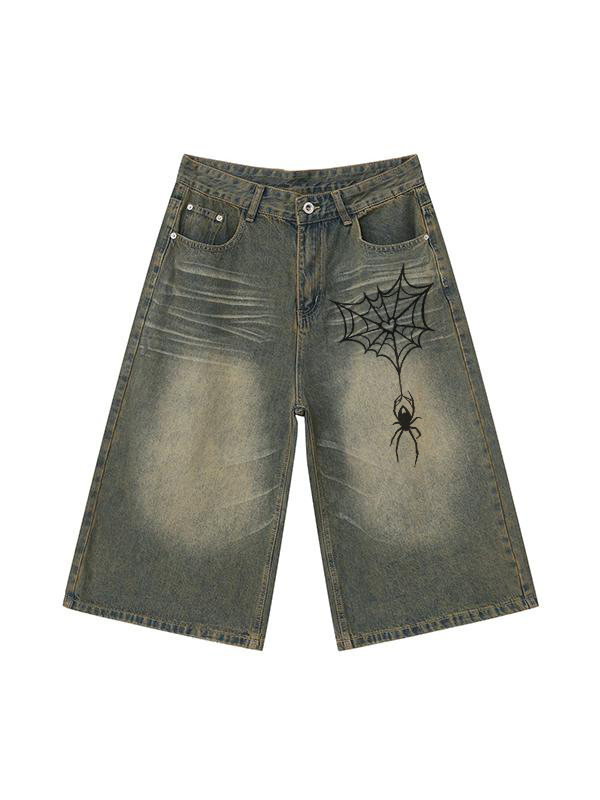 pantalones cortos de mezclilla casuales sueltos con estampado de araña para hombre