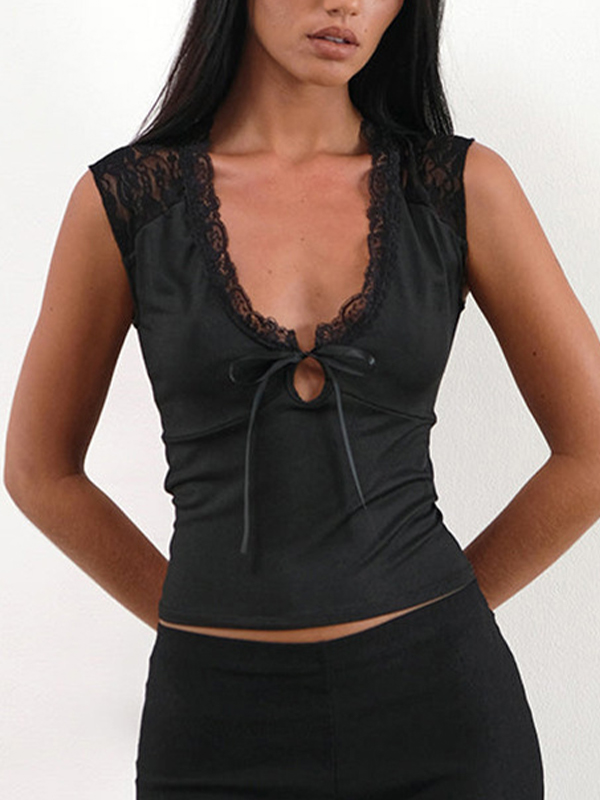 El top de tirantes con encaje y retazos es muy bonito, cómodo y tiene un estilo único y casual.