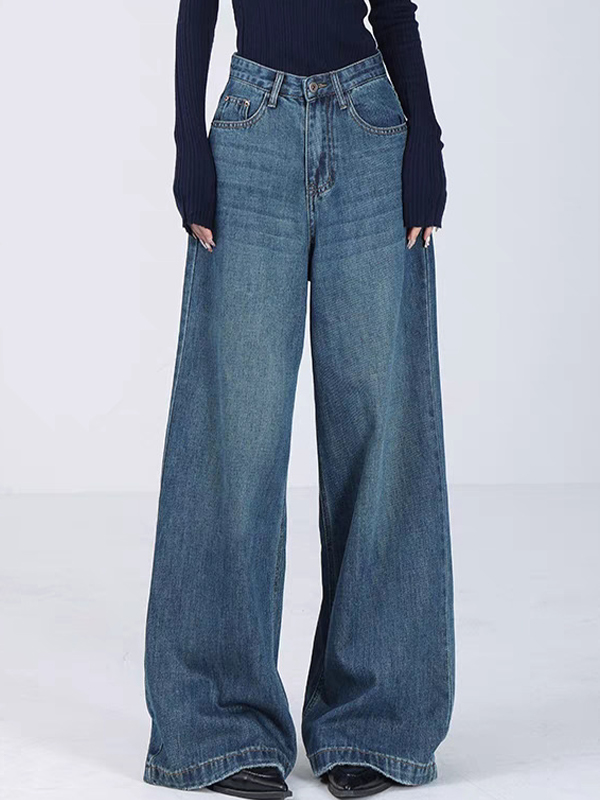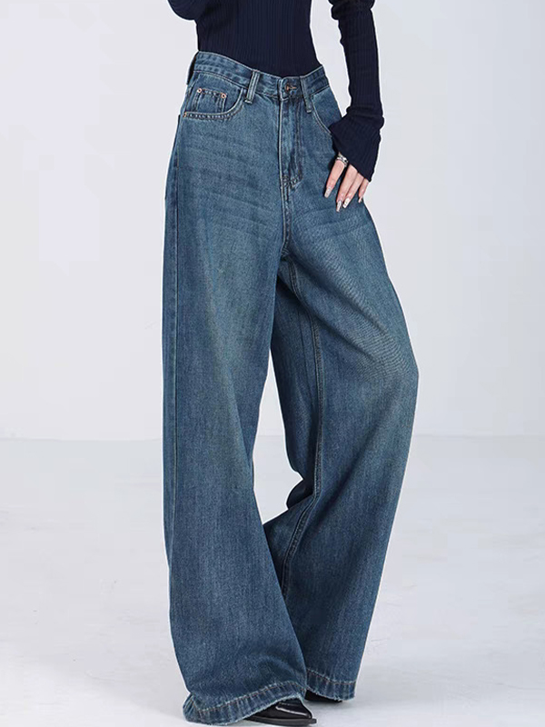 Sé el primero en valorar “Vaqueros boyfriend de pierna ancha de color azul americano”
